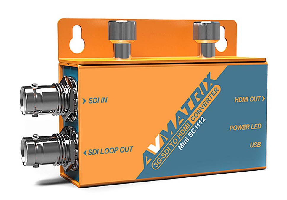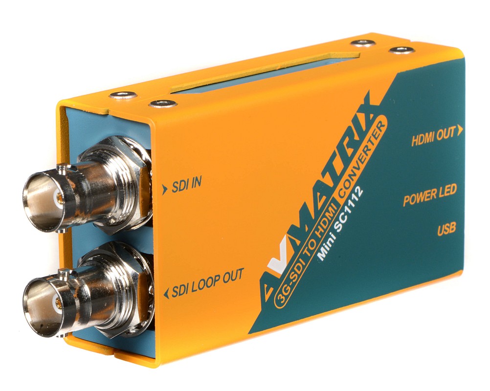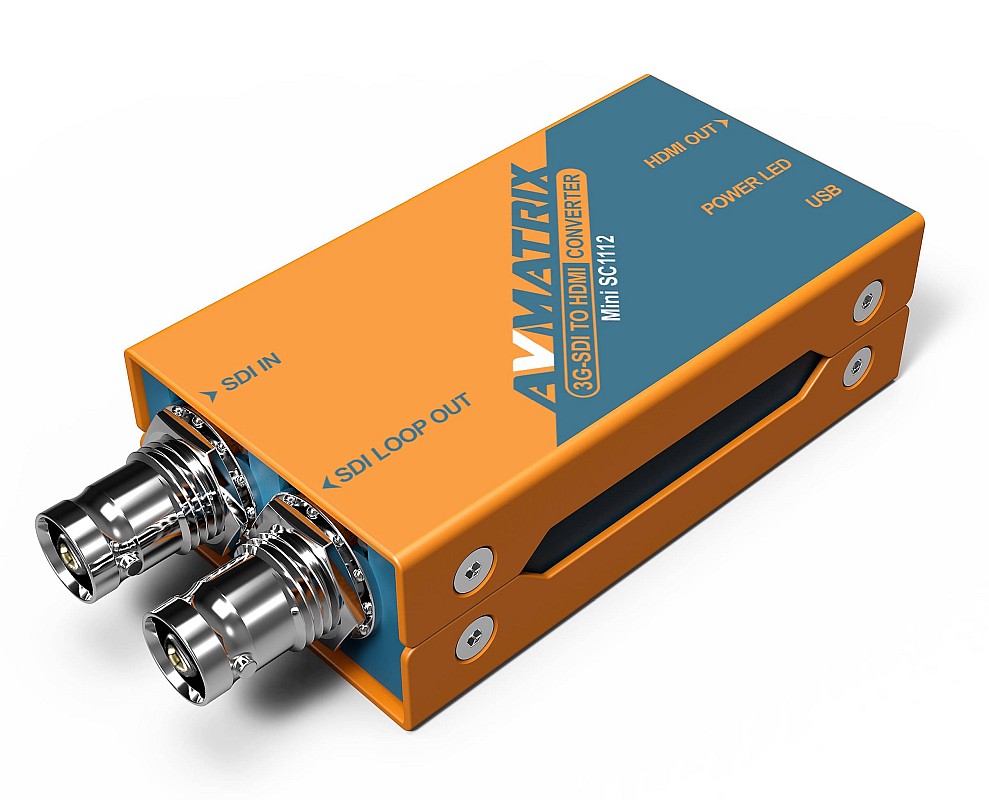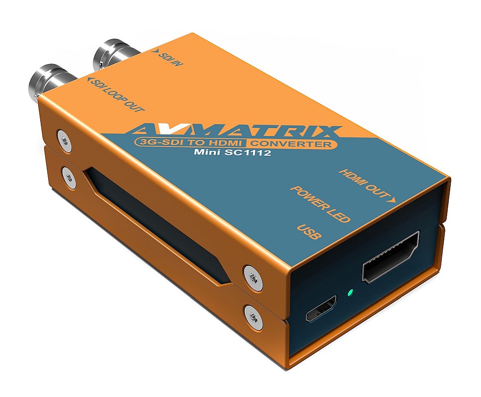 Az AVMatrix SDI to HDMI mini konvertere (SC1112) egy zsebben elférő prémium minőségű broadcast jelátalakító, amely a SD/HD/3G SDI bemeneti jelet (Level A és Level B támogatás) konvertálja HDMI jellé. Az SDI jel továbbfűzhető.