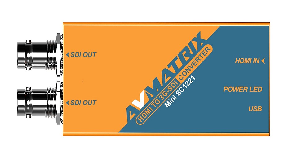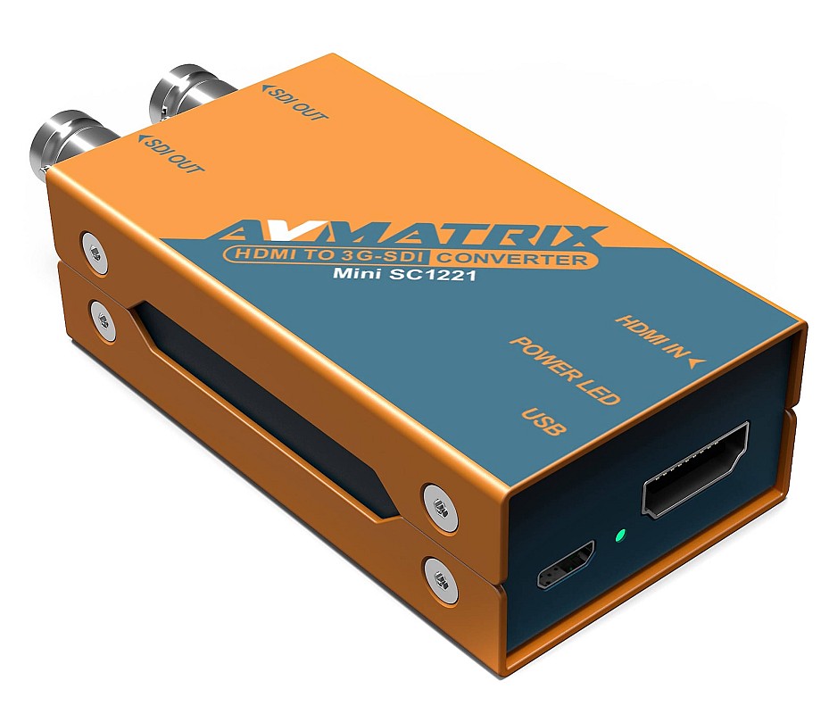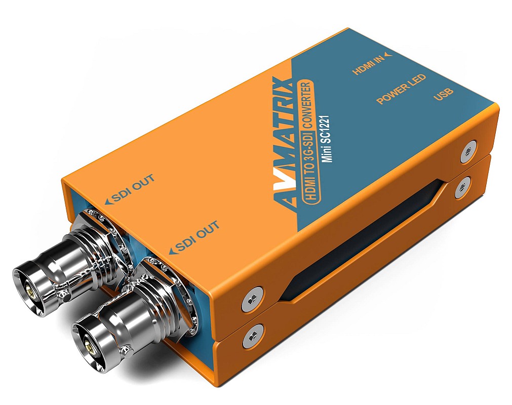 AVMatrix Mini SC1221 egy zsebben elférő Broadcast konverter,amely HDMI bemeneti jelet konvertál Dual SDI jellé.