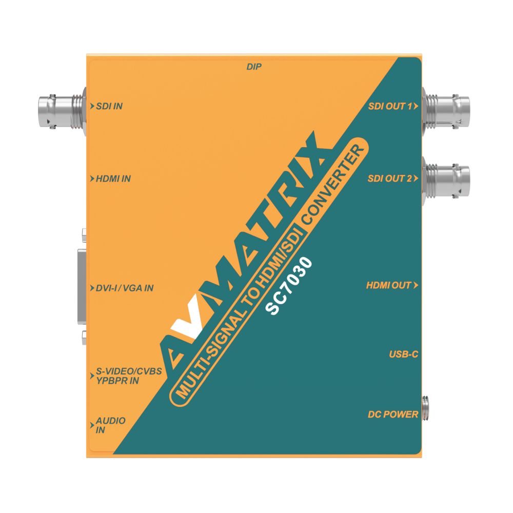 Az AVMatrix SC7030 konverter SDI / HDMI / DVI-I/VGA / CVBS / S-video / YPbPr jelet konvertál SDI / HDMI jellé. Használható broadcast célra, AV produkciókhoz, orvosi alkalmazásokhoz.