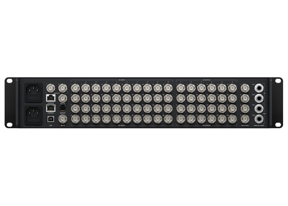 | Bemenetek | 40 × BNC (12G-SDI) 2 × 3,5 mm-es analóg monó audio 1 × 32 sztereó csatornás BNC MADI bemenet 1 × XLR Talkback bemenet 1 × USB Type-B 1 × RJ45 Ethernet |