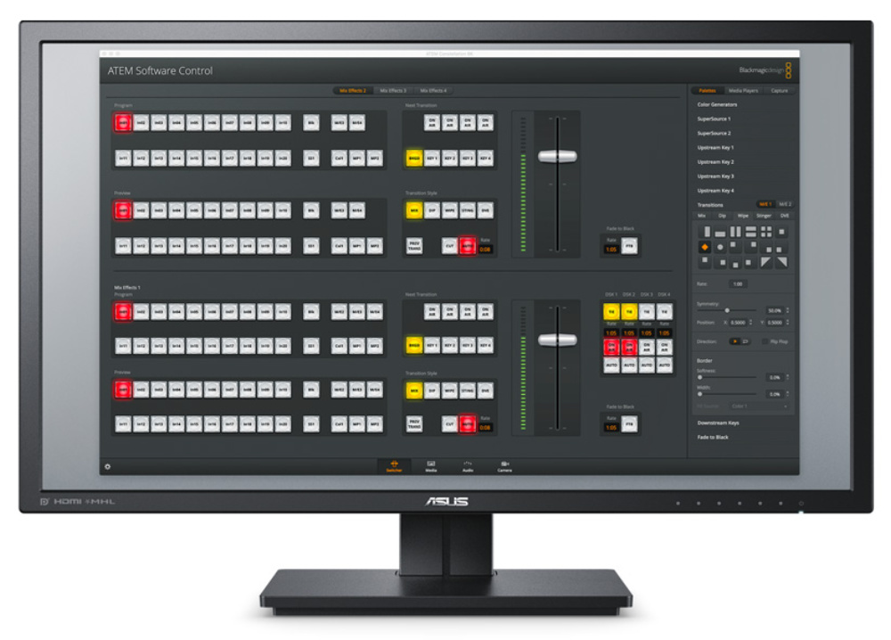 A Constellation 8K kezeléséhez használhatja az ingyenes ATEM szoftvervezérlést vagy a hardveres ATEM Advanced panelek hatalmas választékát.