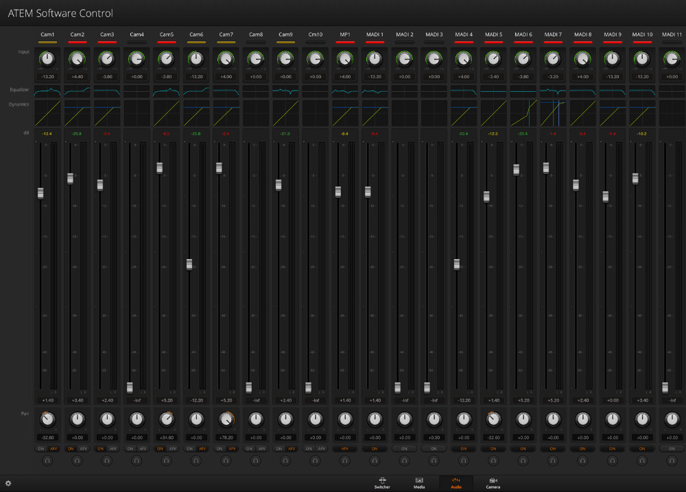 - 156 csatornás Fairlight Audio Mixer szoftver