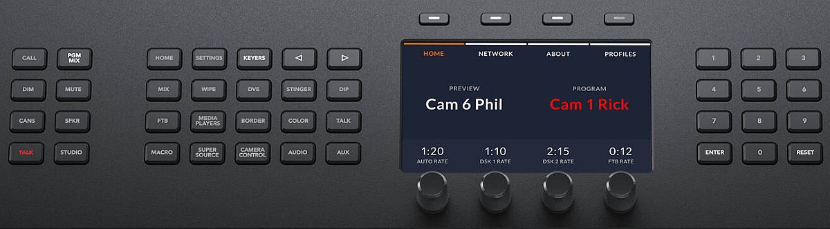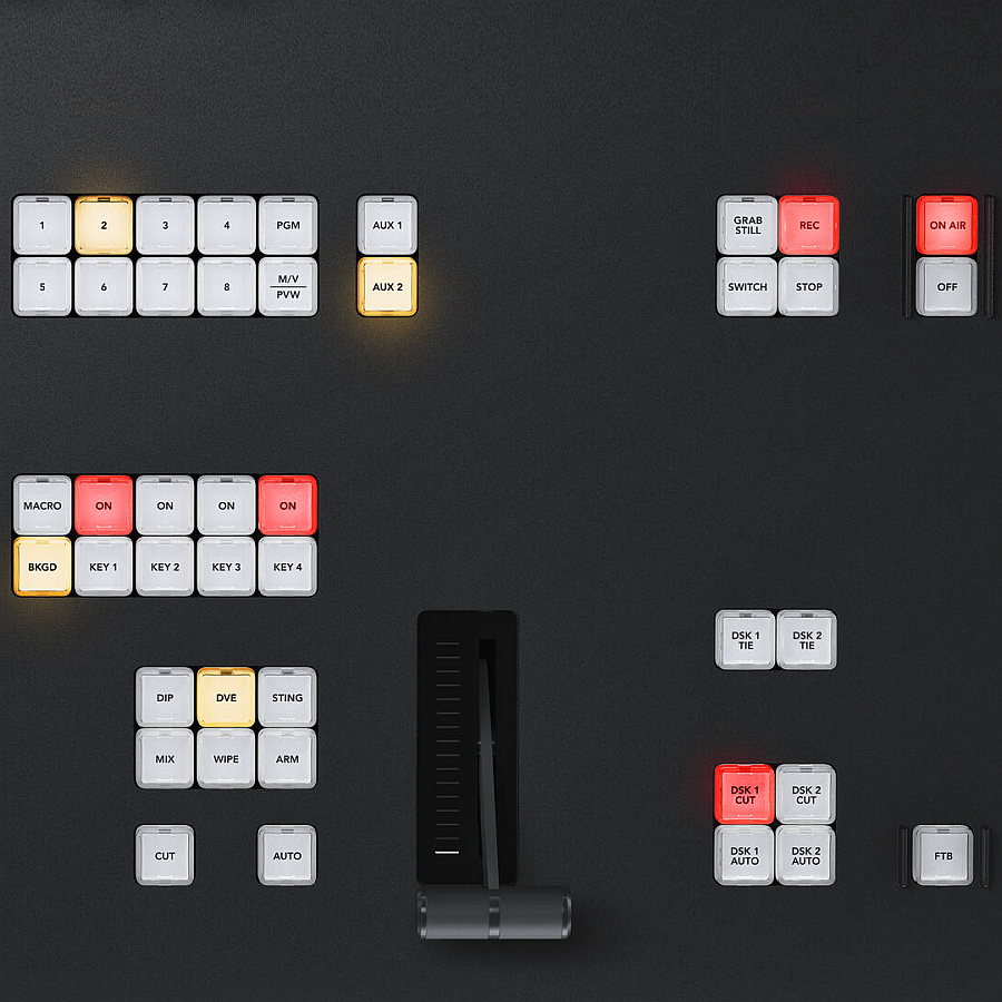 When used with most Blackmagic Design cameras, ATEM can control focus, iris and zoom of compatible lenses and camera settings including gain, white balance, tint, shutter, ND filter, color corrector, tally and record start/stop. | ||