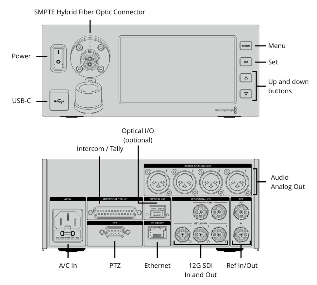 A Blackmagic Studio Fiber Converter egy bidirectional optikai konverter, mely használható például a Blackmagic Camera Fiber Converter-rel. Telepíthető közvetítőkocsiba, stúdióba, külső helyszínekre és egyetlen SMPTE kábelen keresztül képes kommunikálni egy kamerához csatlakoztatott Blackmagic Camera Fiber Converter-rel, az SDI videó-, hang- és kameravezérlő csatlakozások egyetlen optikai kábelre alakítva átvihetők.