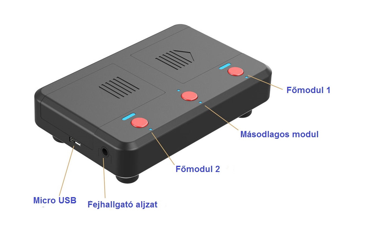 Meg kell nyomni és nyomvatartani a HUB bal oldalán található gombot (Master Module 1) a párosítási folyamat aktiválásához. Ezután aktiválni kell a párosítást az első Slave fejhallgatón. Amikor a párosítási folyamat befejeződik, egy hang hallatszik, és a LED jelzőfény lassan fog villogni. Miután mindhárom Slave fejhallgató csatlakoztatva lett a Master Module 1-hez a LED indikátor abbahagyja a villogást.