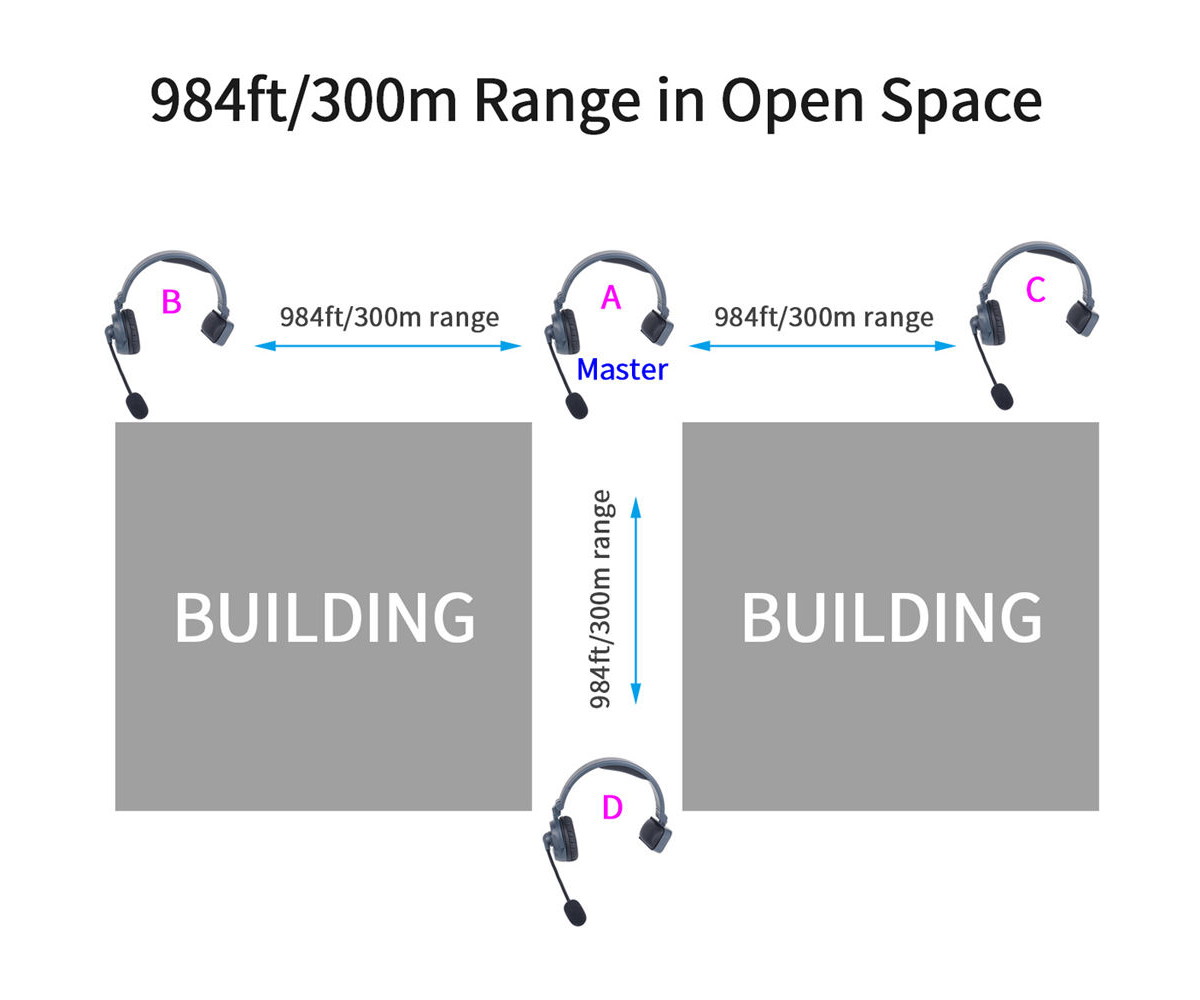 A Hub-os rendszereknél a hatótávolság még rugalmasabban alakítható: optimális kiépítésben a Hub és a Master füles közötti távolsággal (és Hub és Hub közötti távolsággal) a teljes hatótáv tovább növelhető a legtávolabbi headset-ek között. MegjegyzésA hivatalos leírástól függetlenül és felelősségvállalás nélkül elmondható, hogy a Came-TV Waero rendszere hatékonyan használható (nyilván hatótáv csökkenéssel), ha nincs rálátás az egységek között, azaz 1-2 falon még átlő a rendszer. Persze bizonyosan van olyan fal, amin nem, de tapasztalatunk ezzel kapcsolatban nagyon pozitív.