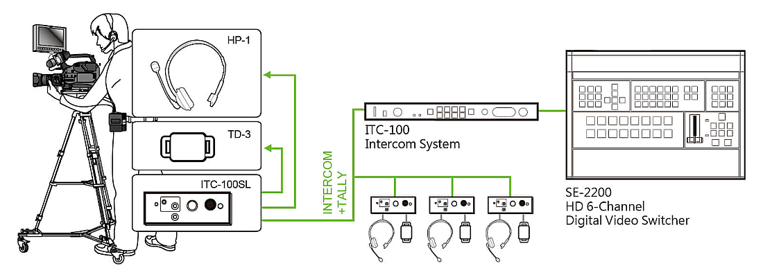 • Supports 8-Way Intercom (includes 4 pc ITC-100SL Belt Packs)