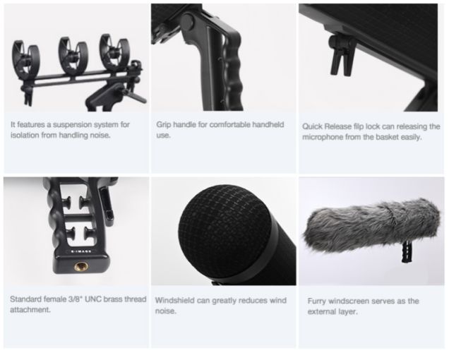 - E-image BS-P70 szőrmók szélzaj-védő és rezgéscsillapító