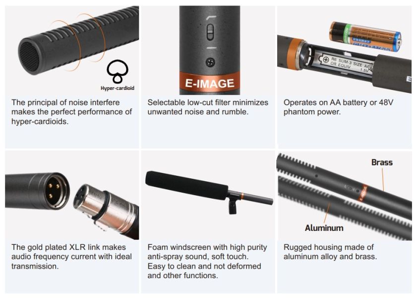 - E-Image PM-846 puskamikrofon mikrofonszivaccsal, kengyellel