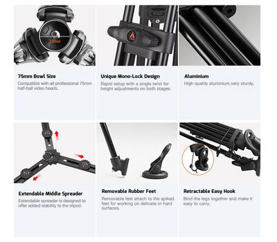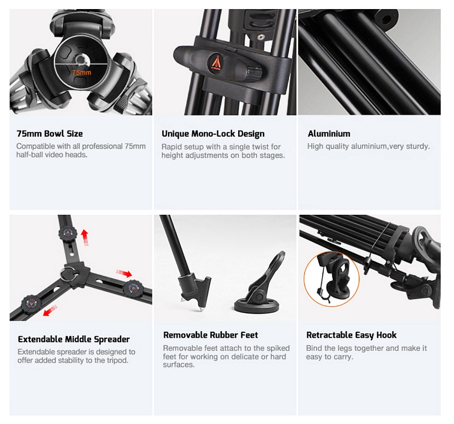 A GA-752 egy 3-részes, gyorszáras alumínium tripod, ø75mm-es szintezőcsészével, 40kg-os terhelhetőséggel és kiemelkedő torziós szilárdsággalTorziós szilárdság