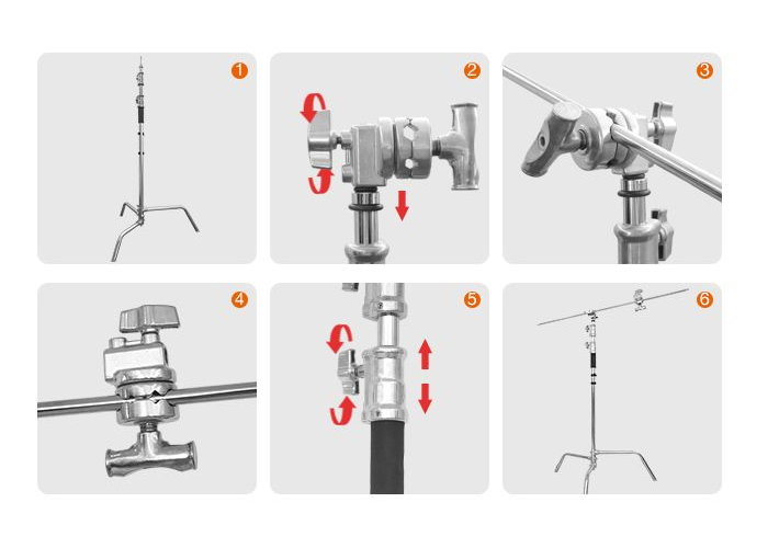 A C-stand alacsony súlypontja és a lábak széles terpesztése lehetővé teszi a nehezebb eszközök felszerelését anélkül, hogy az állvány felborulna. A lábak kialakítása olyan, hogy az egyes lábak bármilyen szögben beállíthatók legyenek és a legtöbb C-Stand-től eltérően, az LCS-04-nél a felső láb magassága külön állítható, így olyan helyeken és helyzetekben is használható, ahol a klasszikus világítástechnikai állványok vagy más C Stand-ek nem jöhetnének számításba.