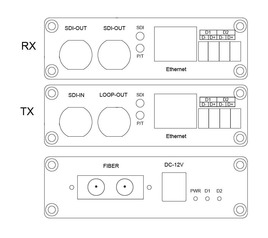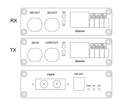 • 1 csatorna 12G/6G/3G/HD-SDI videóátvitel (beágyazott hanggal) optikai szálon