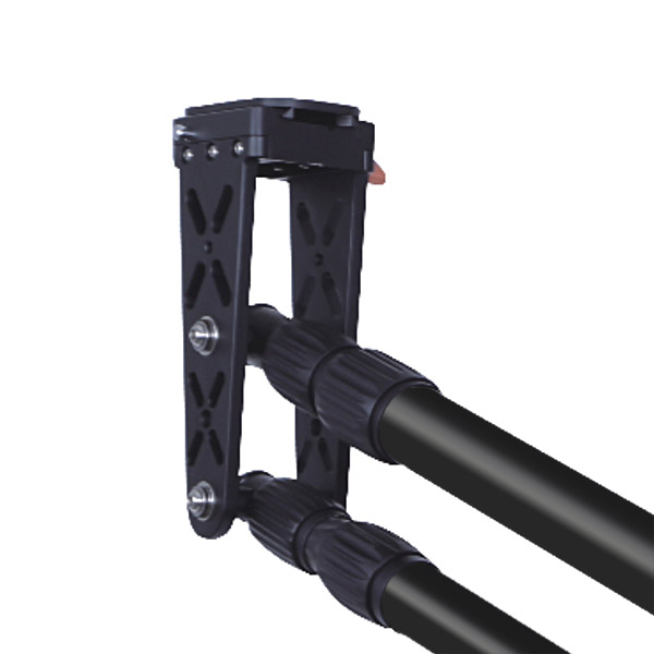 A kiegészítők egyszerű csatlakoztatását 1/4"-os és 3/8"-os belső menetes furatok biztosítják a jib tripod konzoljának mindkét oldalán.
