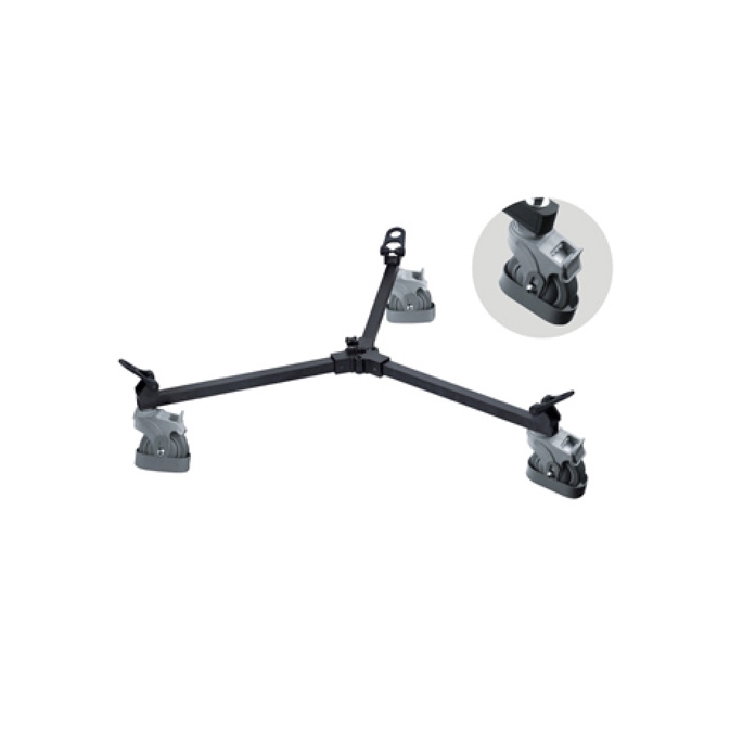 A E-Image EI-7004B egy könnyű, összecsukható tripod dolly 100mm átmérőjű, kábelterelővel ellátott kerekekkel, 60 kg-os terhelhetőséggel.