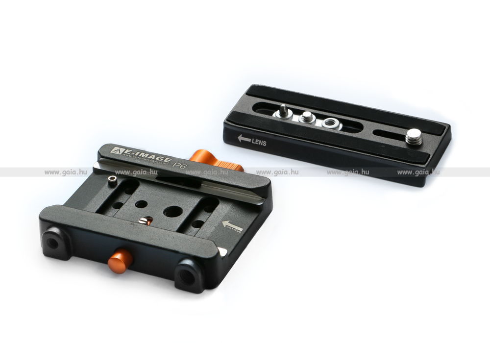 A P6-os QR (Quick-Release) adapter alaptartozéka a GP1 csúszótalp, amely 1/4" és 3/8" csavarokkal és kamera "pin"-nel van ellátva. Az E-Image P6 adapter a saját plate-je mellett használható a Manfrotto 501PL, 501PLONG, 504PLONG csúszótalppakkal is, azaz az E-Image P6 adapter 100%-ban kompatibilis a Manfrotto 577-es gyorscsere adapterével, így nemcsak a Manfrotto plate-ek használhatók a P6 adapterrel, hanem az E-Image plate (GP1) is használható az 577-es adapterrel.
