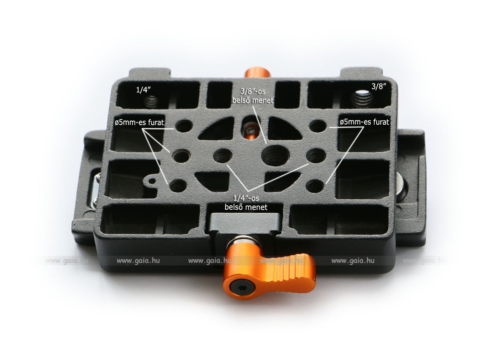 • csatlakozás (alsó): 3/8"-os és 1/4"-os belső menet + ø5mm-es furatok