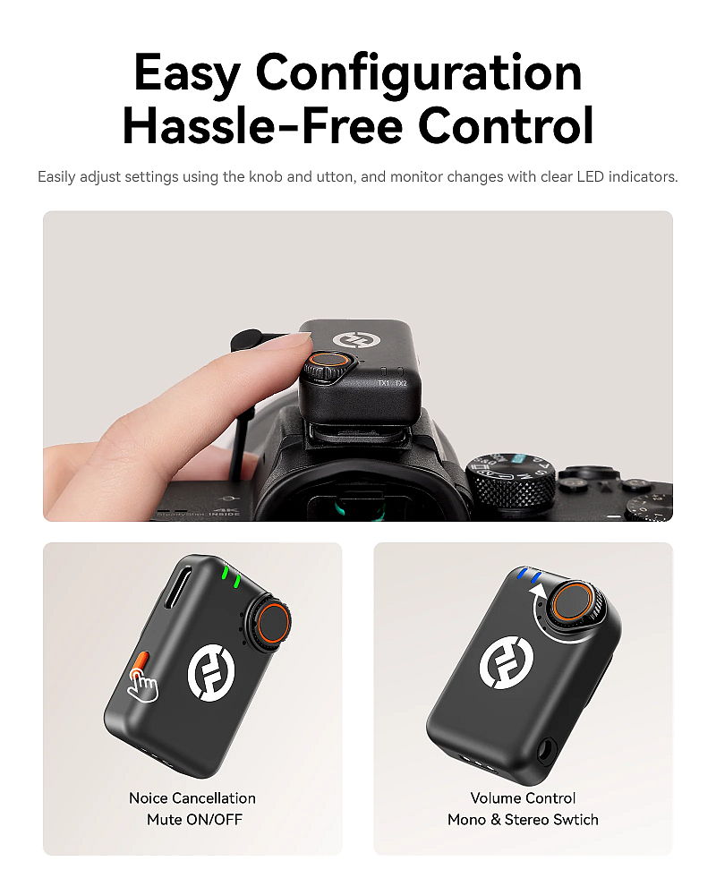 ENCA LARK M2S fejlett környezeti zajszűrést alkalmaz, ENC technológiát, amely az alacsony frekvenciájú zajok automatikus kiküszöbölésével kristálytiszta hangzást biztosít. Aktiválhatja az intelligens zajszűrést a jeladó vagy a vevő egyetlen gombnyomásával. zajszűrő technológia