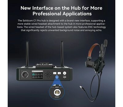 Hollyland Solidcom C1 Pro-Hub a gyártó Solidcom C1 Pro vezeték nélküli headset-es rendszerének Hub-bal kiegészített változata, mely szintén az 1,9GHz-es frekvenciasávban működik DECT technológiát használva full-duplex kommunikációs módban. Az alap C1 Pro rendszerhez a Hub további funkciókat tesz lehetővé, mint pl. a csoportok kezelése, továbbá a Hub által a rendszer bővíthető kaszkádolással és más intercom rendszerekhez való csatlakoztatással.