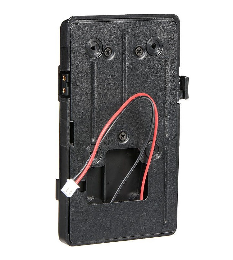 A Lilliput V-Mount akkumulátor hátfal 15 V-os szabványos D-tap kimenettel rendelkezik. A hátfalon található furatok a megfelelő (kompatibilis) Lilliput monitorok mellett a V-Mount hátfallal kompatibilis kamerára felszerelést is lehetővé teszik.