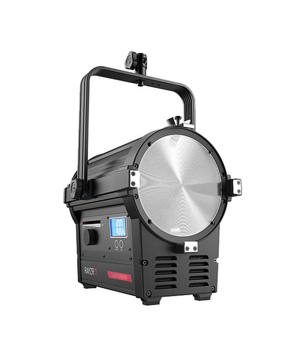 A RAYZR-7 300 Daylight egy 300 Wattos Fresnel LED lámpa, tág határok között, 18 °-tól 55°-ig változtatható sugárzási szöggel, DMX csatlakozókkal a távoli vezérléshez.