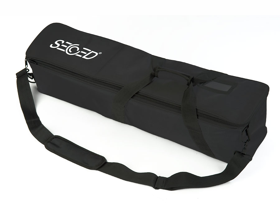 A Secced SC-ENGBAG 100 bélelt tripod táska kifejezetten a Plus 3 videoállvány szettek számára lett kialakítva. Kompatibilis még a kifutott Reach6, Reach7, Reach8 és az Ares4 állványszettekkel is. Alkalmas a tripod és a fluid head összeszerelt állapotban történő kényelmes, biztonságos szállítására. Külön bélelt, széles tépőzár rögzíti benne az állványfejet és a tripodot. A kiegészítők részére nagyméretű zippzáras belső zsebet tartalmaz. Az ENGBAG100 tripodtáskán a fogantyú elhelyezése aszimmetrikus, hogy a súlyeloszlás ideális legyen. A tartozék vállszíj széles és puha, használata kényelmes a hosszabb ideig tartó gyalogos szállításnál is.