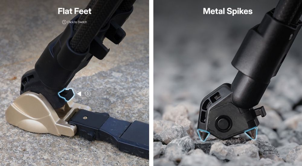 Puha vagy kavicsos terepen a tripodpapucs is eltávolítható, ekkor a tripod iker-tüskés lábvége kapaszkodik a talajba (lásd a 6. képen).